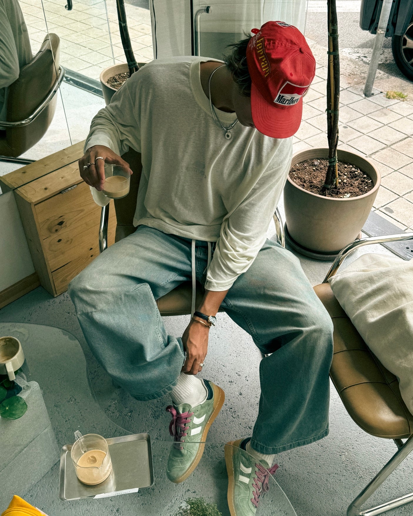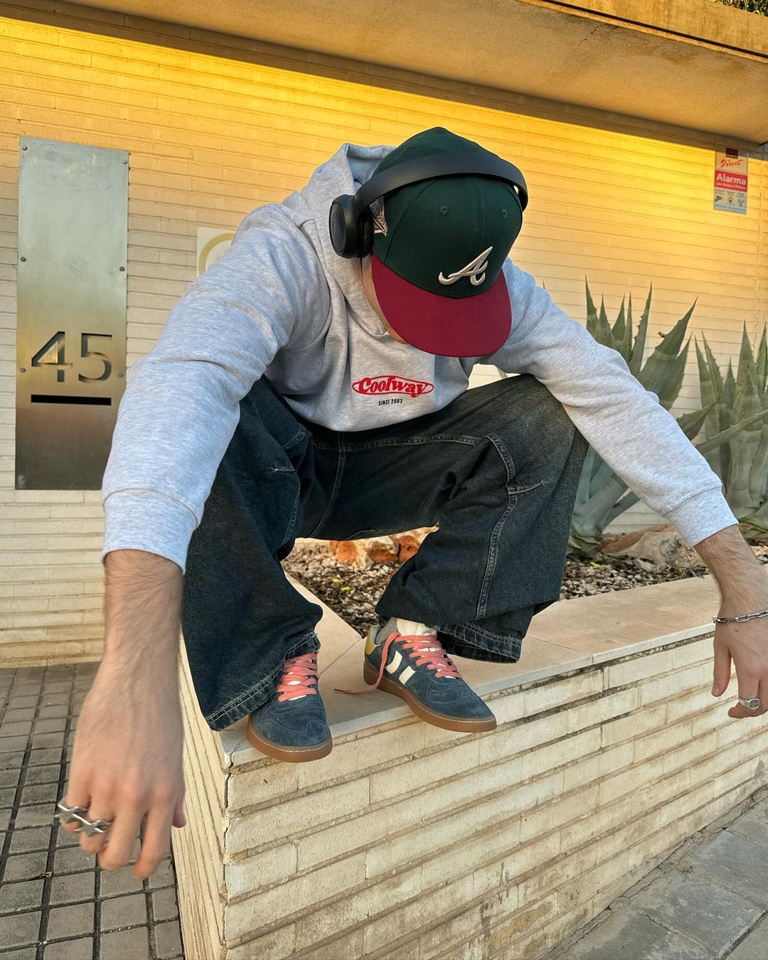 Zapatilla deportiva de serraje con detalles en contraste de color. Lengüeta de piel y preformada con un acolchado figurado. Vistas del forro en piel. Cordones planos de algodón en dos tonos intercambiables. Cuello ligeramente acolchado. La parte delantera lleva un refuerzo de pespuntes. Suela flexible de goma/caucho que aporta durabilidad y agarre. Cuenta con el nombre del modelo “GOAL” en lateral en oro viejo